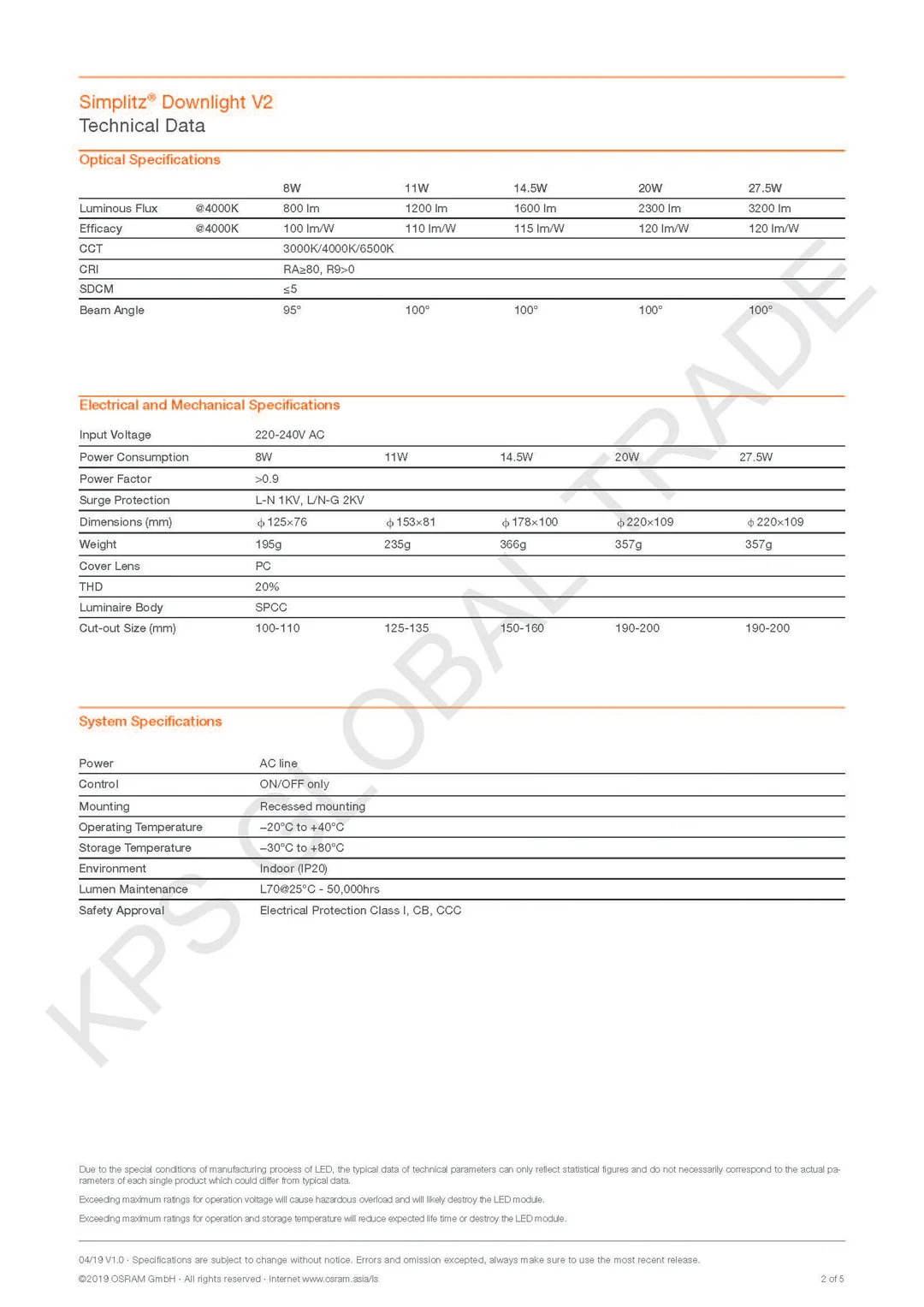 - 5 powers from 8W-27.5W